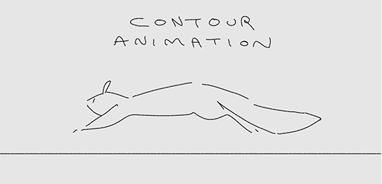 Animating is basically drawing a lot and linking these drawings together. Some of us draw naturally with contours; the best way for them to begin animating is perhaps simply by animating the contour! So here we link all the drawings by animating the outline and silhouette that are represented by curves, straight lines, and angles.