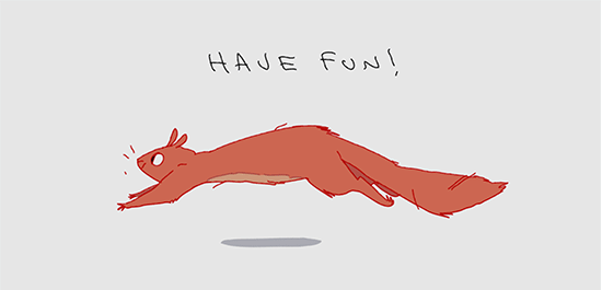 Caption: A friend asked recently: how do I start animating? So here I have a quick example of a happy running squirrel. Start simple, I recommend, that is, to simplify your animation so you don’t get caught up in the details in the beginning. I observe there are two basic ways you can make a rough animation – by contour and structural animations.
