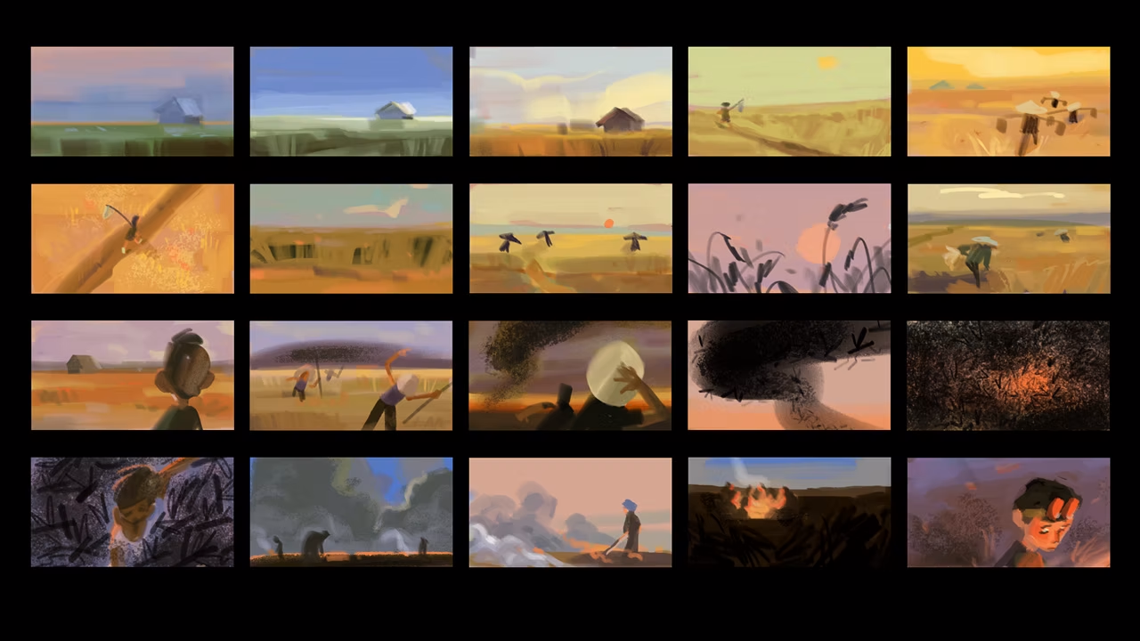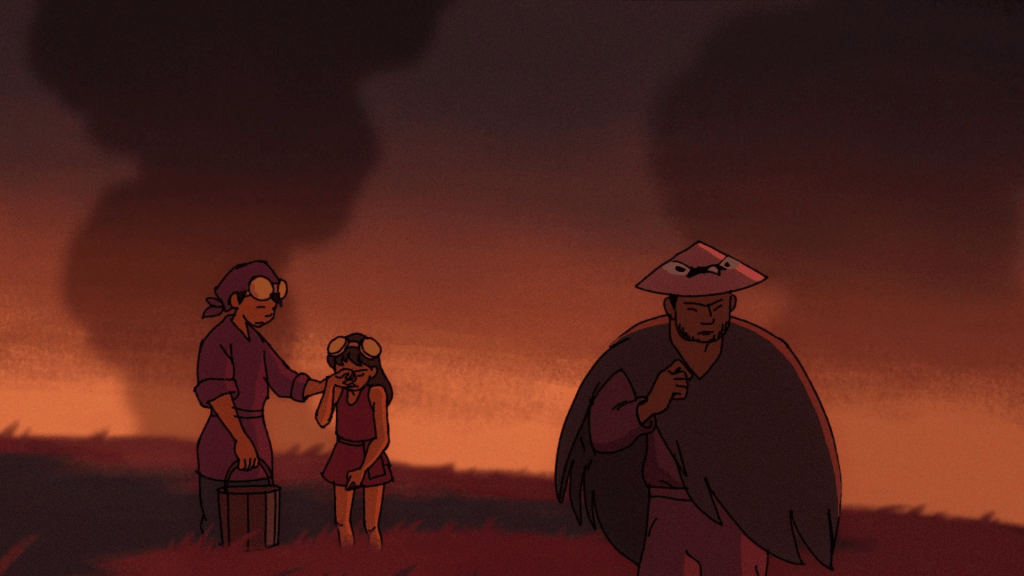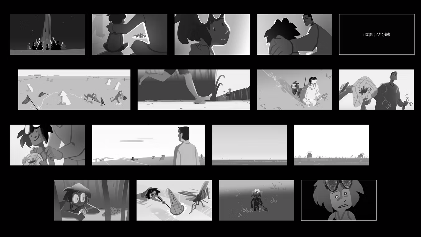 Swarm (2016) is a collaborative graduation film directed by Sarah Sun (RISD) and myself (SCAD), with screenplay by Yiyun Teo and story guidance from Dr. Lucy Spelman. The film follows a village plagued by a locust swarm, in a world where animals have grown scarce. Farmers dress as birds and frogs instead – a reminder that humans too are part of nature’s cycle, harvesting from it and yet threatened by it all the same.