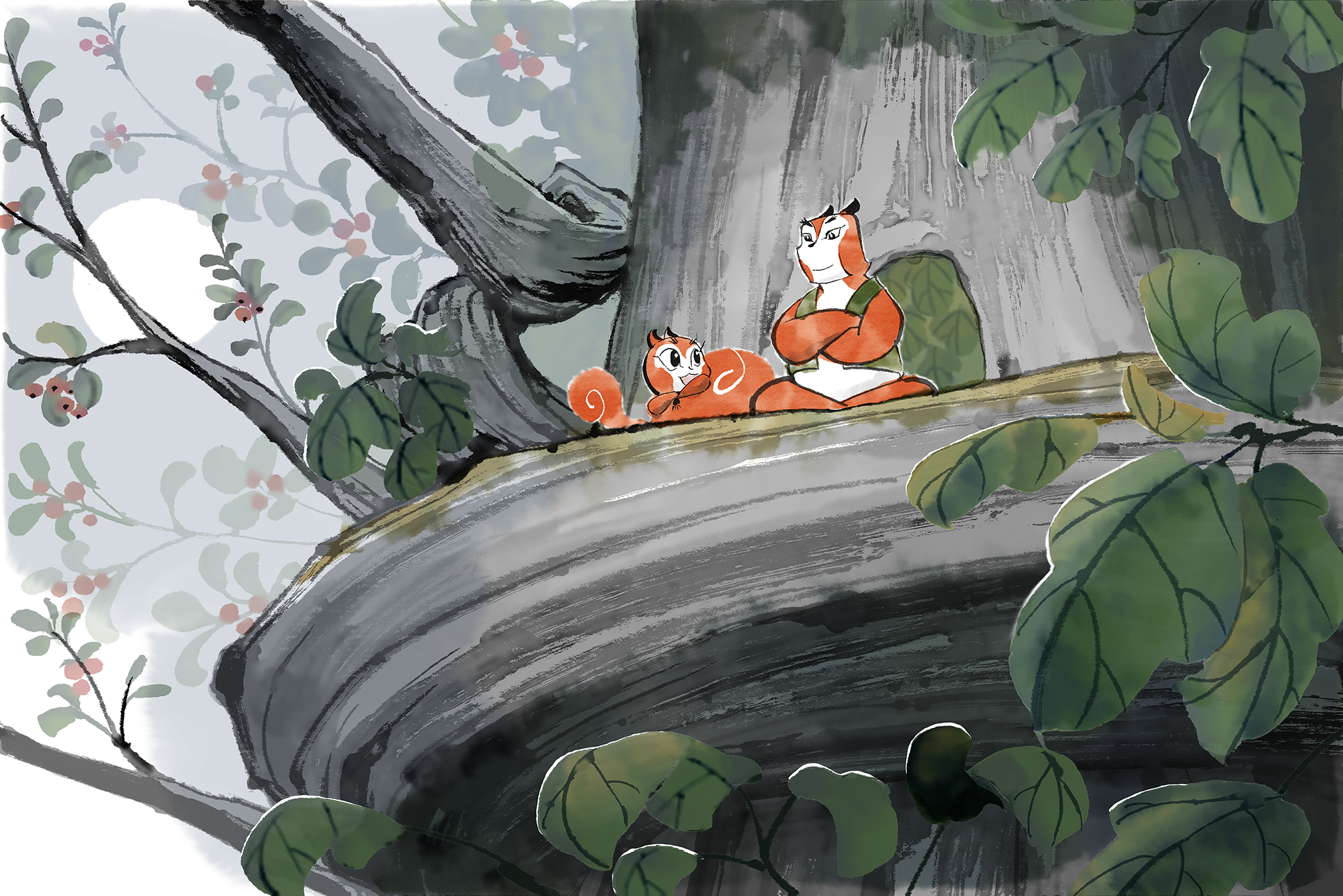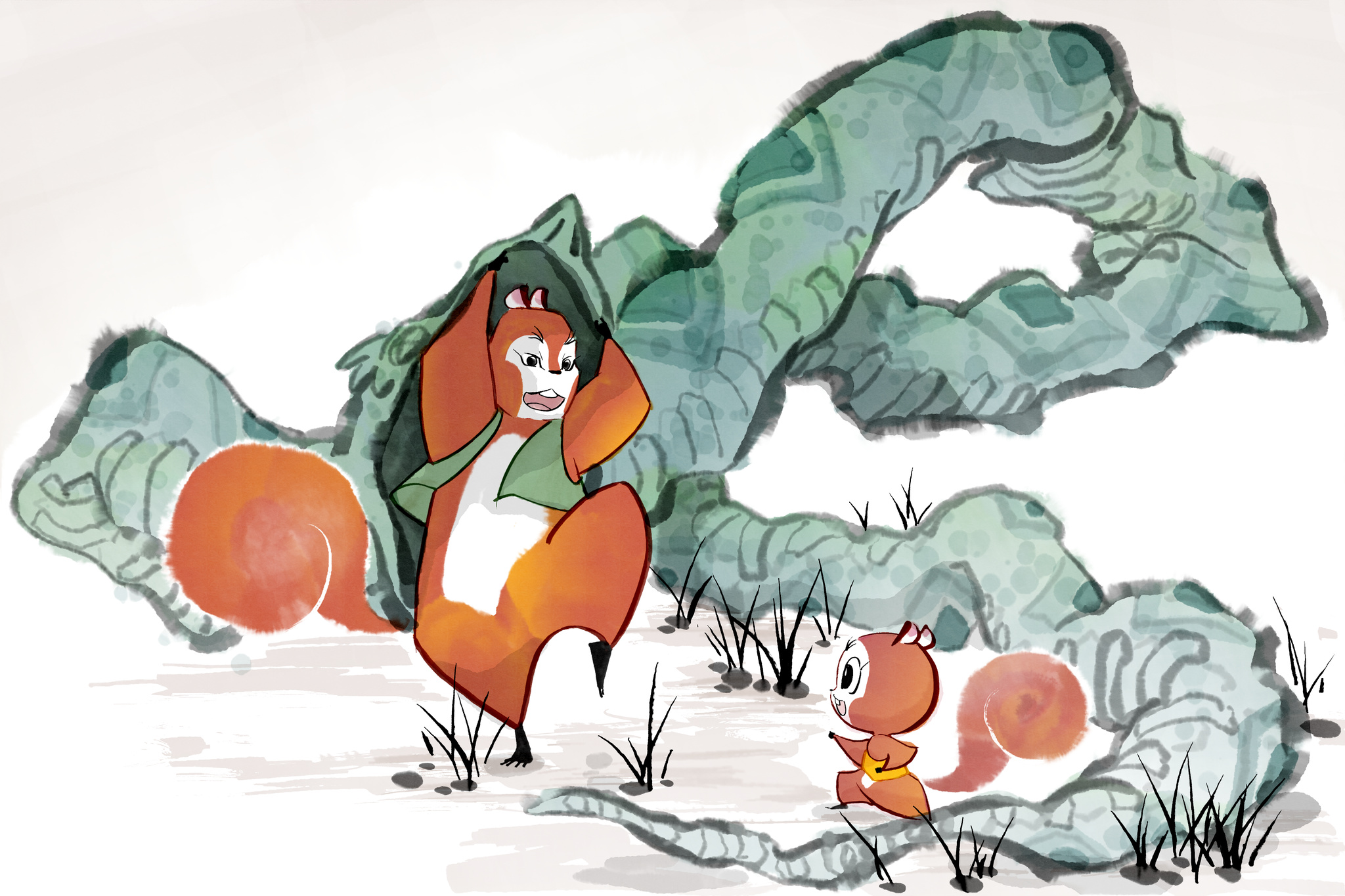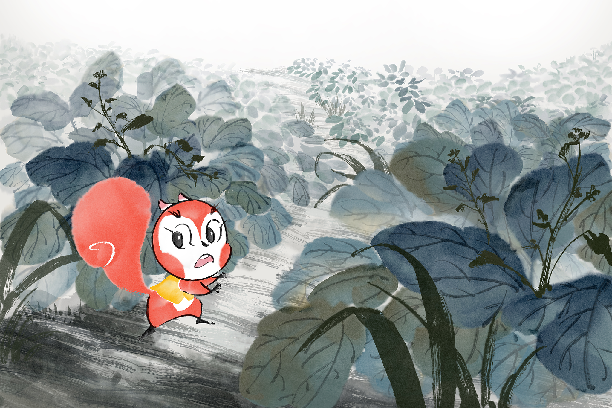 Red Squirrel Mai was a feature film in development from 2017 to 2019, envisioned as a lighthearted family adventure presented in a Chinese ink painting style.