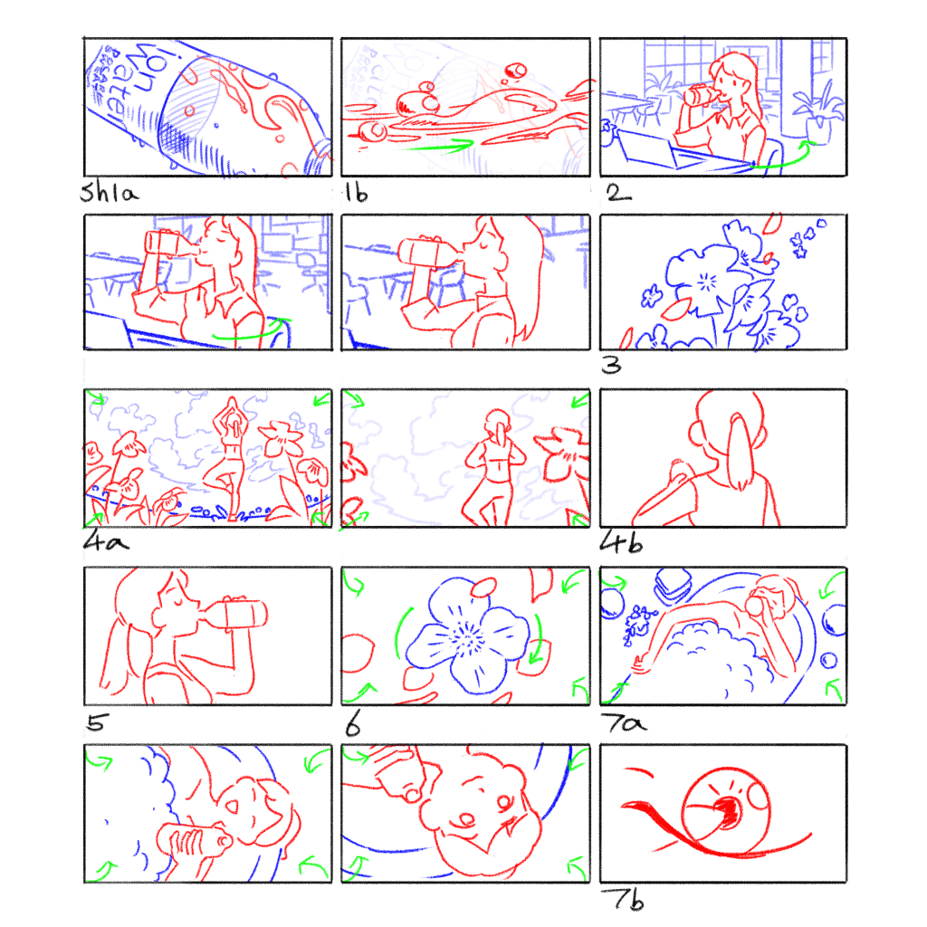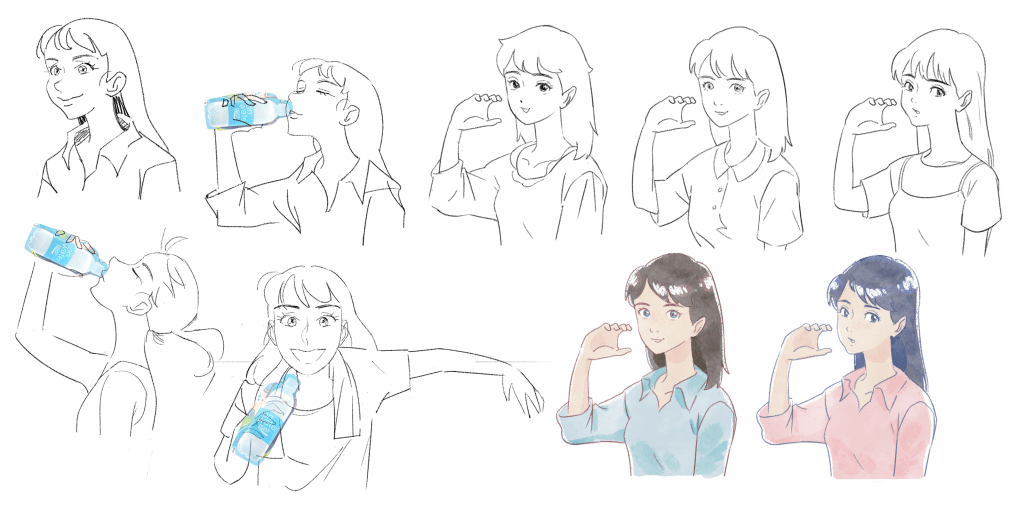 Anime-style advertising was growing in popularity, with brands like McDonald’s and Cup Noodles successfully capturing younger audiences through its distinctly eye-catching appeal. Pocari Sweat wanted to use a similar strategy to reach office ladies specifically, promoting Ion Water – a lighter alternative to their flagship energy drink. In 2022, our team was commissioned to create a 10-second animated sequence within a live-action commercial, featuring an anime version of spokesperson Sofiee Ng. The director envisioned a watercolour aesthetic with smooth, flowing elements that felt both stylish and intimate.