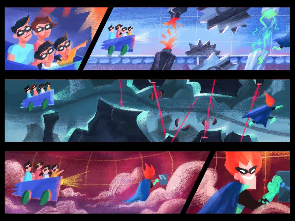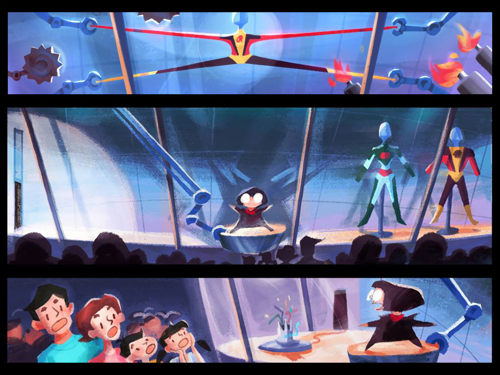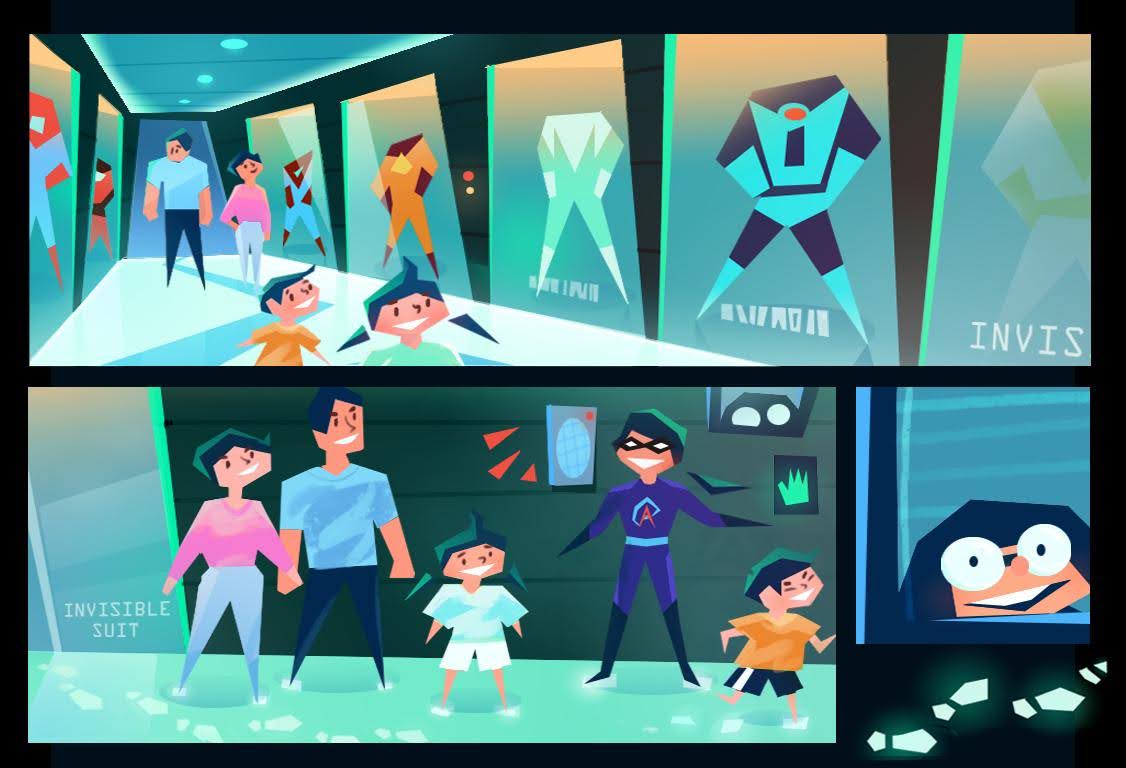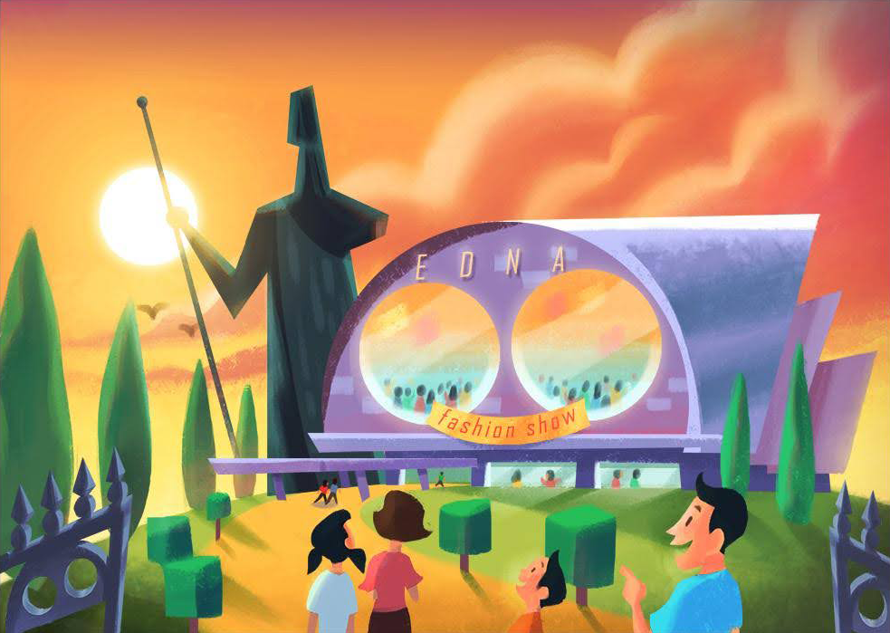 Concept art I did for the Disney Imaginations Hong Kong Design Competition 2014, where our team pitched Edna’s Fashion Show, an immersive experience centred on The Incredibles’ Edna Mode and the theme ‘everybody has what it takes to be a hero’. My teammates were Cyma Yuan and the twins Jes and Cin Wibowo. Mia Goodwin was our supervisor. We placed second.