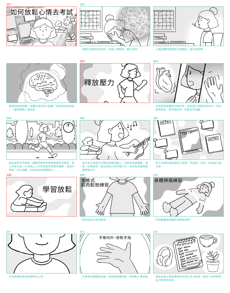 Objective: Create a 3-min self-help video targeting secondary school students on coping with exam stress.