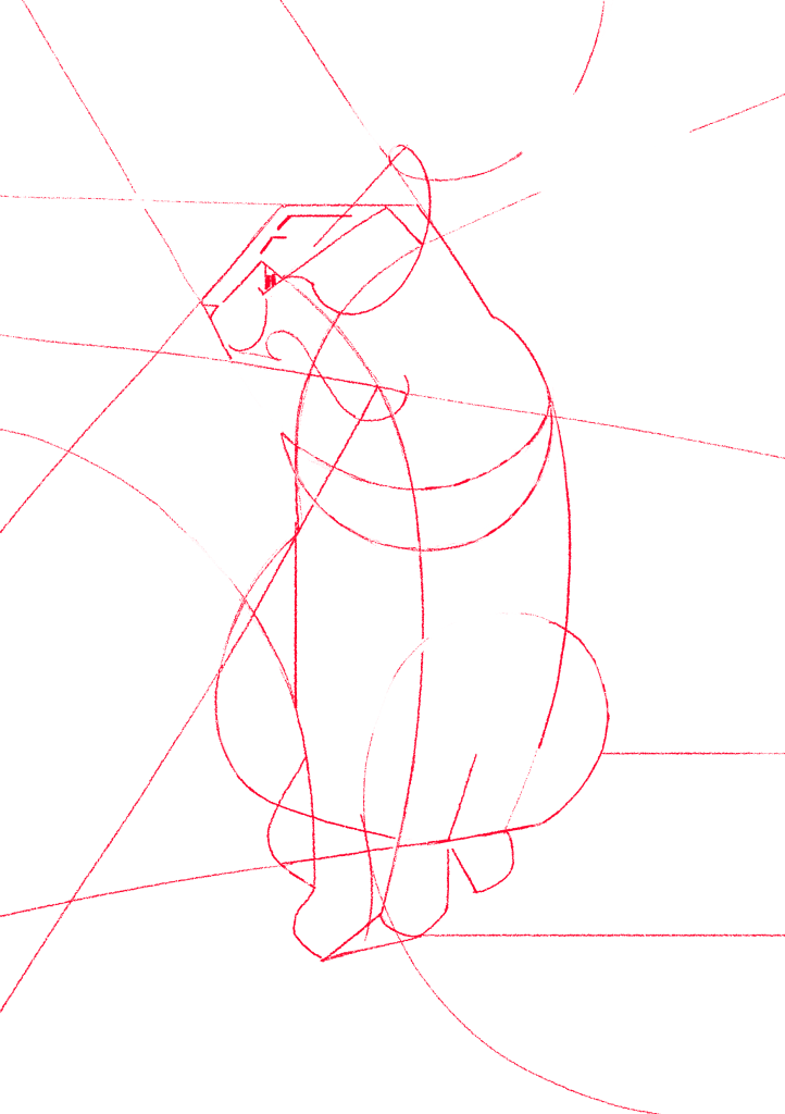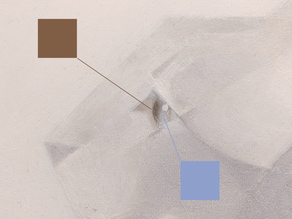 Adding titanium white on wet raw umber gives brown, and on dried raw umber a bluish grey, so the whole painting process was a delicate play of cold and warmth using only two paints.